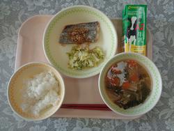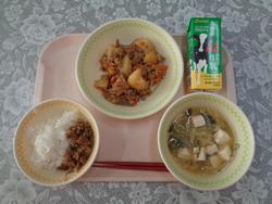 ごはん(藤沢産新米) あさりのつくだに あげじゃがいもの そぼろに みそしる ぎゅうにゅう