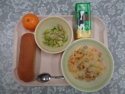 くろパン ウィンナーとまめの グラタン キャベツとハムの ソテー みかん ぎゅうにゅう |