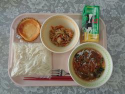 〈ふじさわランチ〉 ごはん(藤沢産新米) たちうおの こうみソースかけ ゆでやさい せんべいじる ぎゅうにゅう |