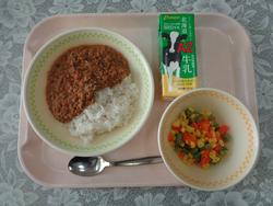 ドライカレー さんしょくソテー ぎゅうにゅう |