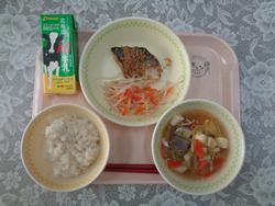 ごはん さばのごまみそかけ ゆでやさい けんちんじる ぎゅうにゅう |