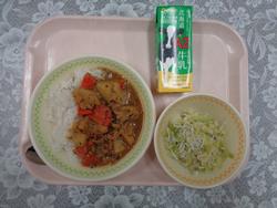 〈ふじさわランチ〉 みどりんカレーライス キャベツとしらすの ソテー ぎゅうにゅう |