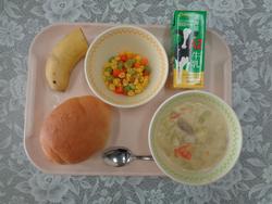 ロールパン ホワイトシチュー さんしょくソテー バナナ ぎゅうにゅう |