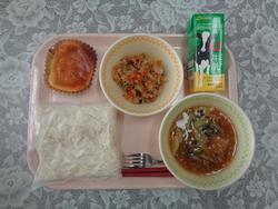 ビビンバ ちゅうかたまごスープ ぎゅうにゅう |