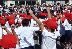 応援団のかけ声のもと、元気よく歌えました