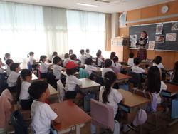 1・2年生が外国の生活や文化を知るために国際理解教室を年3回行っています