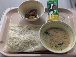 今日の給食:ソフトめん白ごまタンタンうどん、大学芋、牛乳