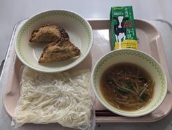 今日の給食:ホットラーメン、サンマーメン、揚げぎょうざ、牛乳