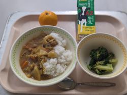 今日の給食:大根カレーライス・ブロッコリーのゆずしょうゆあえ・みかん・牛乳