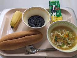 今日の献立:ふじさわコッペパン・黒ごまあん・すいとん汁・牛乳