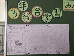 3年生が総合で学んだことを他学年にも共有しようと給食時間を活用してくれています。その日の献立にあわせて放送をしたり、各クラスが食缶を受けとりにくる時間にポスターをもって「心をこめていただきますをしよう」といった呼びかけをしたりと学んだことを一生懸命に伝えてくれました。