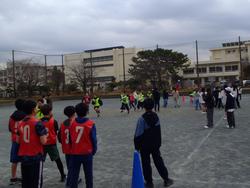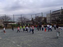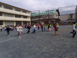 3月17日(火)、6年生が校庭で学年レクをしていました