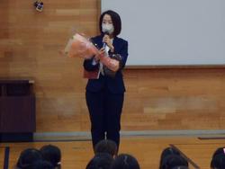 修了式後、離退任式が行われ、それぞれの教職員が思いを伝えました