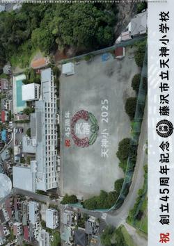 天神小学校では、創立以来5年ごとに航空写真を