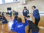 1年生が百人一首大会を開催しました。読み手は学年の先生たち。それぞれの個性で札を読み上げます。雅な音楽が流れ雰囲気づくりも完璧です。国語の時間に練習した成果を発揮すべく、前のめりになって取り組む生徒もいました。武士の格好をした先生の登場で場が盛り上がりました。先生も生徒もともに楽しむ和やかな時間でした。