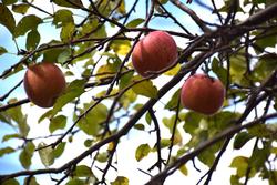 センター前の姫リンゴの実も19個色づき、メジロがついばみに来ています。