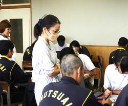 今回は湘洋中学校で内田研究員の授業を参観しました。中学校3年のレッスン3 Cranes for Peace で、受け身の文の1時間目の授業でした。内田研究員が一年次より持ち上がりで教えてきた学年で、先生の丁寧な指導に子どもたちが安心して授業を受けている姿が印象的でした。
